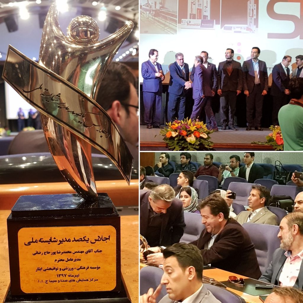 درتاریخ۱۳۹۷/۴/۲۰ همایش تجلیل ازمدیران شایسته در سالن همایش سازمان صدا وسیما باحضورمعاونین موسسه ایثار اقایان درخشان،صدر وعبدی برگزارشد. و پورحاج رضایی، مدیرعامل موسسه ایثار به عنوان مدیرشایسته برگزیده شد که درخشان قائم مقام ایشان، تندیس افتخار را به جای ایشان دریافت کرد.